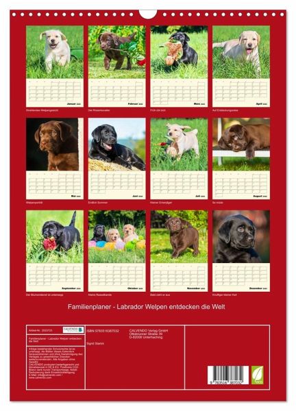 QUALITÄT - Hochwertiger Fotokalender mit 12 wunderschönen Motiven auf lichtbeständigem Bilderdruckpapier, robuste Spiralbindung mit Aufhängebügel.NACHHALTIG - deutliche Abfallreduzierung durch bedarfsgerechte Einzelstückfertigung, umweltfreundliches FSC-zertifiziertes Papier, Produktion in Deutschland, klimabewusste Logistik.PERFEKTES GESCHENK - Kalender für Freunde und Familie, für Kinder und Erwachsene, jung und alt, zu Weihnachten, Geburtstag oder zwischendurch.VIELFALT - Bildkalender in verschiedenen Formaten, z.B. DIN A5, DIN A4, DIN A3 sowie DIN A2. Ob Naturmotiv, Gemälde oder Fotos, ideal für ein persönliches Wohlfühlambiente.Entzückende Labrador Babys - in Bildern festgehalten von der Tierfotografin Sigrid Starick von Autor(in): SiSta-Tierfoto