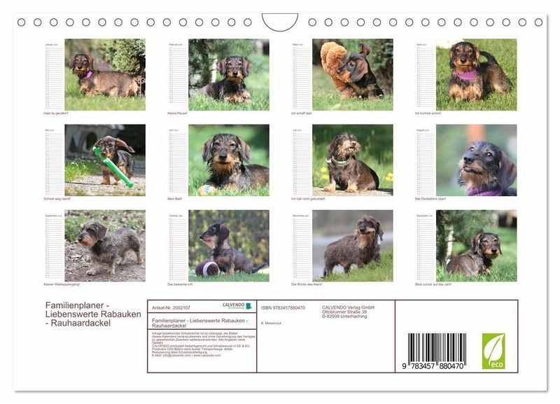 QUALITÄT - Hochwertiger Fotokalender mit 12 wunderschönen Motiven auf lichtbeständigem Bilderdruckpapier, robuste Spiralbindung mit Aufhängebügel.NACHHALTIG - deutliche Abfallreduzierung durch bedarfsgerechte Einzelstückfertigung, umweltfreundliches FSC-zertifiziertes Papier, Produktion in Deutschland, klimabewusste Logistik.PERFEKTES GESCHENK - Kalender für Freunde und Familie, für Kinder und Erwachsene, jung und alt, zu Weihnachten, Geburtstag oder zwischendurch.VIELFALT - Bildkalender in verschiedenen Formaten, z.B. DIN A5, DIN A4, DIN A3 sowie DIN A2. Ob Naturmotiv, Gemälde oder Fotos, ideal für ein persönliches Wohlfühlambiente.Niemand kann ihnen wirklich böse sein - den liebenswerten Rabauken. Sie bringen uns einfach zum Lachen diese Rauhaardackel. von Autor(in): Barbara Mielewczyk
