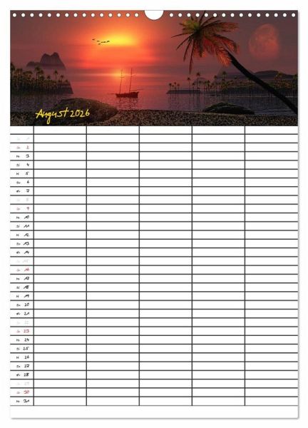 Mit diesem Kalender können sie ihre Termine oder Familienplanung perfekt verwalten, somit haben sie immer eine gute Übersicht für den ganzen Monat.