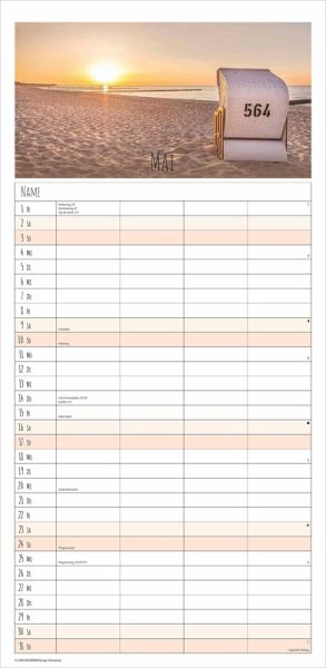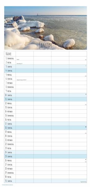 Jedes Monatsblatt ziert ein stimmungsvolles und farbintensives Landschaftsbild vom Meer, das ein wenig Ruhe und Entspannung in Ihren hektischen Alltag bringt. Ergänzend zu den liebevoll gestalteten Kalenderblättern bietet Ihnen dieser Planer viele hilfreiche Zusatzinformationen.