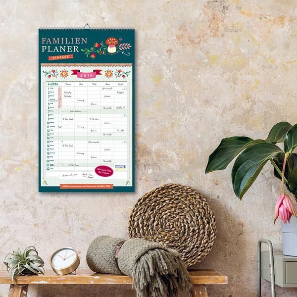 Korsch Familienplaner Vintage - Großer Jahresplaner für Familien, WGs und Co