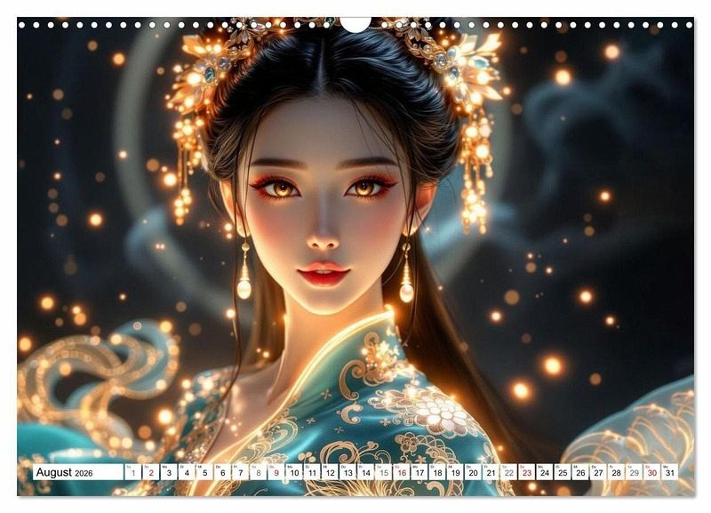 Tauchen Sie ein in die faszinierende Welt der leuchtenden "Fantasie Asia-Girls" und erleben Sie zauberhafte KI-Illustrationen fernöstlicher Schönheiten, von eleganten chinesischen und japanischen Damen bis hin zur kraftvollen Fantasie Kämpferin. Dieser Kalender vereint klassische Anmut mit mystischer Stärke und entführt Sie auf eine visuelle Reise voller Eleganz, Magie und spannender Geschichten. Ein außergewöhnliches Kunstwerk, das Inspiration und Schönheit in Ihr Jahr bringt - perfekt für Liebhaber asiatischer Kultur und fantasievoller Portraitkunst.