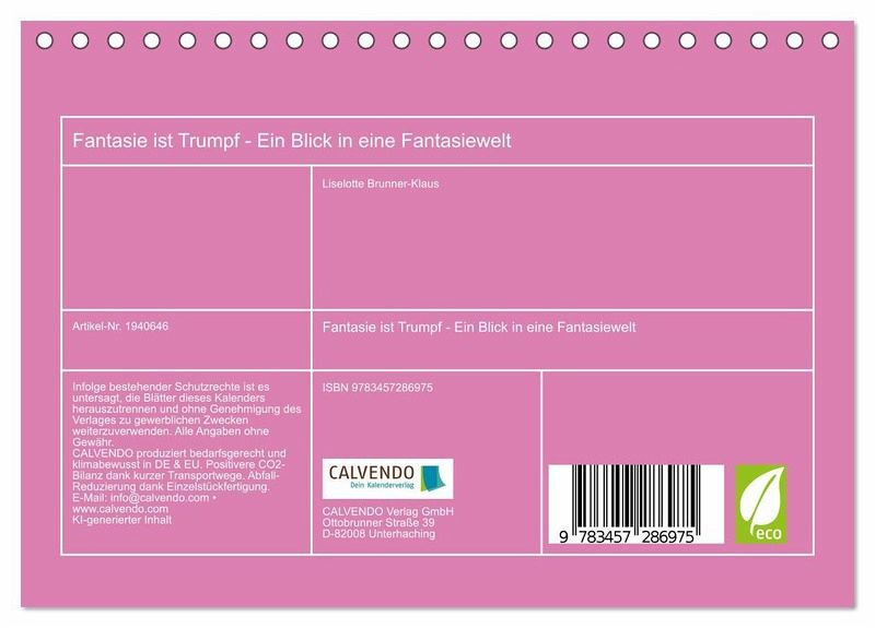QUALITÄT - Hochwertiger Fotokalender mit 12 wunderschönen Motiven auf lichtbeständigem Bilderdruckpapier, robuste Spiralbindung.NACHHALTIG - deutliche Abfallreduzierung durch bedarfsgerechte Einzelstückfertigung, umweltfreundliches FSC-zertifiziertes Papier, Produktion in Deutschland, klimabewusste Logistik.PERFEKTES GESCHENK - Kalender für Freunde und Familie, für Kinder und Erwachsene, jung und alt, zu Weihnachten, Geburtstag oder zwischendurch.VIELFALT - Bildkalender in verschiedenen Formaten, z.B. DIN A5, DIN A4, DIN A3 sowie DIN A2. Ob Naturmotiv, Gemälde oder Fotos, ideal für ein persönliches Wohlfühlambiente.Eine magische Welt von Autor(in): Liselotte Brunner-Klaus