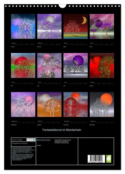 QUALITÄT - Hochwertiger Fotokalender mit 12 wunderschönen Motiven auf lichtbeständigem Bilderdruckpapier, robuste Spiralbindung mit Aufhängebügel.NACHHALTIG - deutliche Abfallreduzierung durch bedarfsgerechte Einzelstückfertigung, umweltfreundliches FSC-zertifiziertes Papier, Produktion in Deutschland, klimabewusste Logistik.PERFEKTES GESCHENK - Kalender für Freunde und Familie, für Kinder und Erwachsene, jung und alt, zu Weihnachten, Geburtstag oder zwischendurch.VIELFALT - Bildkalender in verschiedenen Formaten, z.B. DIN A5, DIN A4, DIN A3 sowie DIN A2. Ob Naturmotiv, Gemälde oder Fotos, ideal für ein persönliches Wohlfühlambiente.bunte und fantasievolle Bäume mit Vollmond oder Mondsichel von Autor(in): Issa Bild