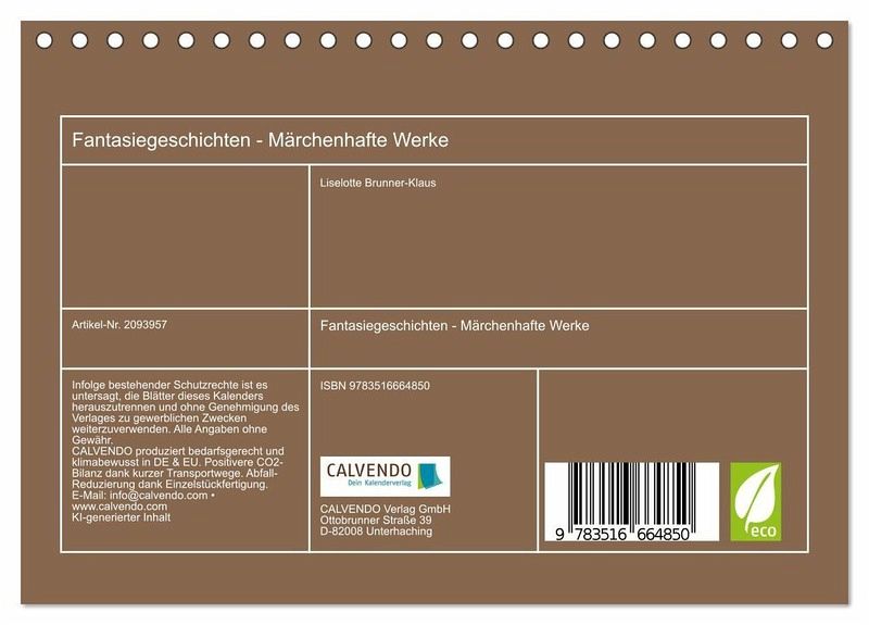 QUALITÄT - Hochwertiger Fotokalender mit 12 wunderschönen Motiven auf lichtbeständigem Bilderdruckpapier, robuste Spiralbindung.NACHHALTIG - deutliche Abfallreduzierung durch bedarfsgerechte Einzelstückfertigung, umweltfreundliches FSC-zertifiziertes Papier, Produktion in Deutschland, klimabewusste Logistik.PERFEKTES GESCHENK - Kalender für Freunde und Familie, für Kinder und Erwachsene, jung und alt, zu Weihnachten, Geburtstag oder zwischendurch.VIELFALT - Bildkalender in verschiedenen Formaten, z.B. DIN A5, DIN A4, DIN A3 sowie DIN A2. Ob Naturmotiv, Gemälde oder Fotos, ideal für ein persönliches Wohlfühlambiente.Magie der Fantasie von Autor(in): Liselotte Brunner-Klaus