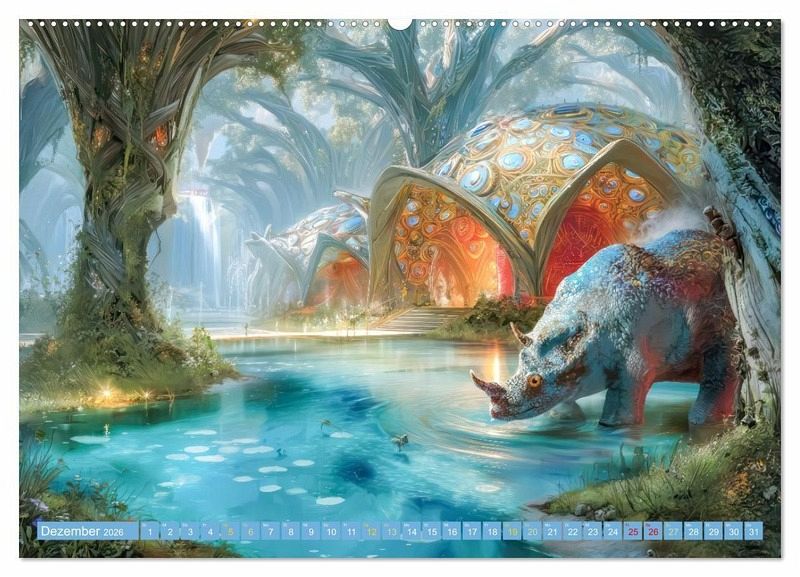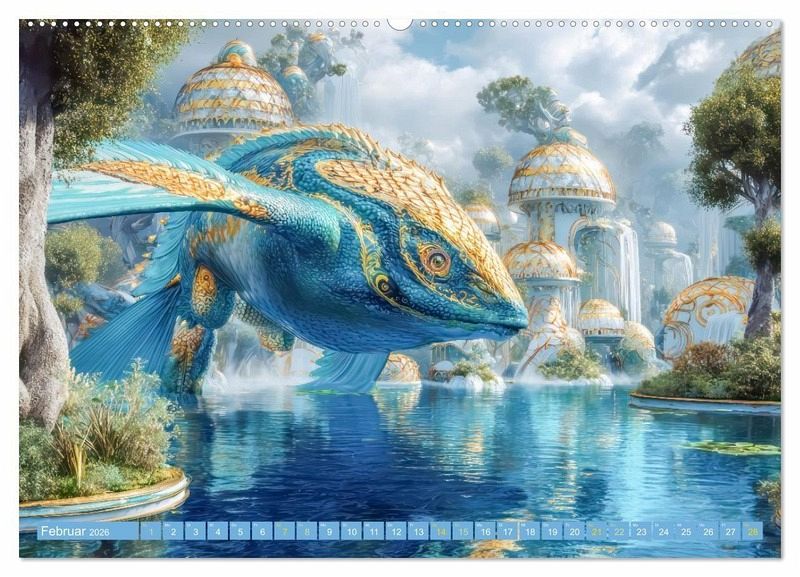 Dezember: Eine gehörnte Fantasiekreatur geht ins Wasser