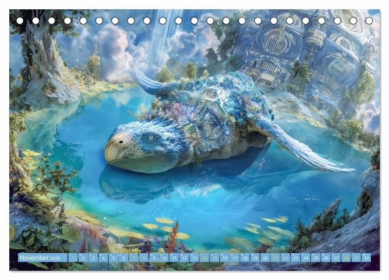 Dezember: Eine gehörnte Fantasiekreatur geht ins Wasser