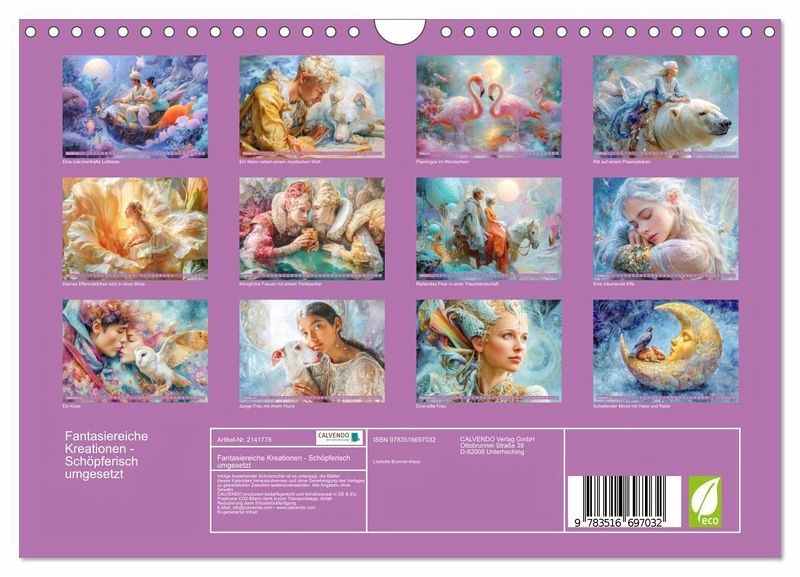 QUALITÄT - Hochwertiger Fotokalender mit 12 wunderschönen Motiven auf lichtbeständigem Bilderdruckpapier, robuste Spiralbindung mit Aufhängebügel.NACHHALTIG - deutliche Abfallreduzierung durch bedarfsgerechte Einzelstückfertigung, umweltfreundliches FSC-zertifiziertes Papier, Produktion in Deutschland, klimabewusste Logistik.PERFEKTES GESCHENK - Kalender für Freunde und Familie, für Kinder und Erwachsene, jung und alt, zu Weihnachten, Geburtstag oder zwischendurch.VIELFALT - Bildkalender in verschiedenen Formaten, z.B. DIN A5, DIN A4, DIN A3 sowie DIN A2. Ob Naturmotiv, Gemälde oder Fotos, ideal für ein persönliches Wohlfühlambiente.Werke für Fantasiefans von Autor(in): Liselotte Brunner-Klaus