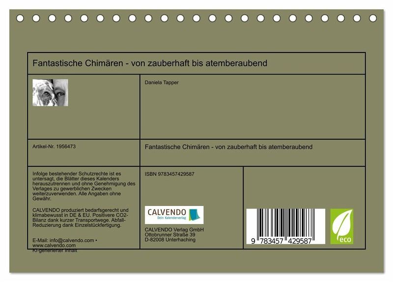 QUALITÄT - Hochwertiger Fotokalender mit 12 wunderschönen Motiven auf lichtbeständigem Bilderdruckpapier, robuste Spiralbindung.NACHHALTIG - deutliche Abfallreduzierung durch bedarfsgerechte Einzelstückfertigung, umweltfreundliches FSC-zertifiziertes Papier, Produktion in Deutschland, klimabewusste Logistik.PERFEKTES GESCHENK - Kalender für Freunde und Familie, für Kinder und Erwachsene, jung und alt, zu Weihnachten, Geburtstag oder zwischendurch.VIELFALT - Bildkalender in verschiedenen Formaten, z.B. DIN A5, DIN A4, DIN A3 sowie DIN A2. Ob Naturmotiv, Gemälde oder Fotos, ideal für ein persönliches Wohlfühlambiente.Magisch und legendär von Autor(in): Daniela Tapper