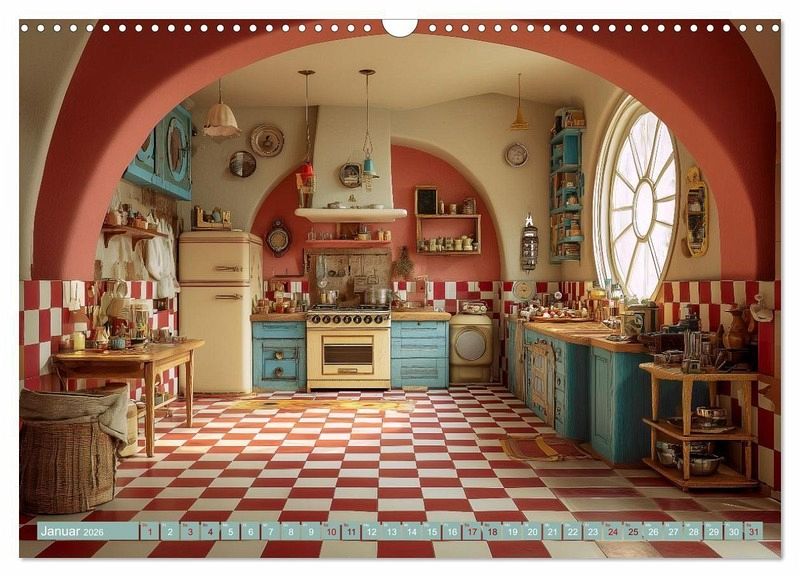 Fantastische Küchenwelten entfalten sich hier in überraschenden Bildern: mal bunt wie ein 1950er-Jahre-Diner, mal verwunschen wie eine Palastküche aus einem Jules-Verne-Roman, mal gemütlich wie ein Hobbitbau oder verspielt im Hundertwasser-Stil. Jede Szene ist eine kreative Hommage an Einrichtung, Architektur und Fantasie - ein inspirierender Blick auf Küchenräume, die Staunen wecken und zum Träumen einladen.