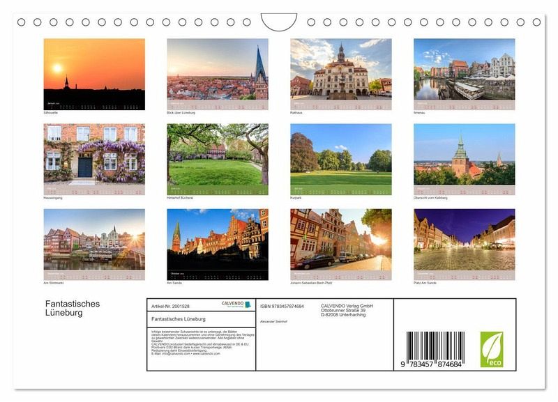 QUALITÄT - Hochwertiger Fotokalender mit 12 wunderschönen Motiven auf lichtbeständigem Bilderdruckpapier, robuste Spiralbindung mit Aufhängebügel.NACHHALTIG - deutliche Abfallreduzierung durch bedarfsgerechte Einzelstückfertigung, umweltfreundliches FSC-zertifiziertes Papier, Produktion in Deutschland, klimabewusste Logistik.PERFEKTES GESCHENK - Kalender für Freunde und Familie, für Kinder und Erwachsene, jung und alt, zu Weihnachten, Geburtstag oder zwischendurch.VIELFALT - Bildkalender in verschiedenen Formaten, z.B. DIN A5, DIN A4, DIN A3 sowie DIN A2. Ob Naturmotiv, Gemälde oder Fotos, ideal für ein persönliches Wohlfühlambiente.Hochwertige Fotografien von der Hansestadt Lüneburg. von Autor(in): Alexander Steinhof