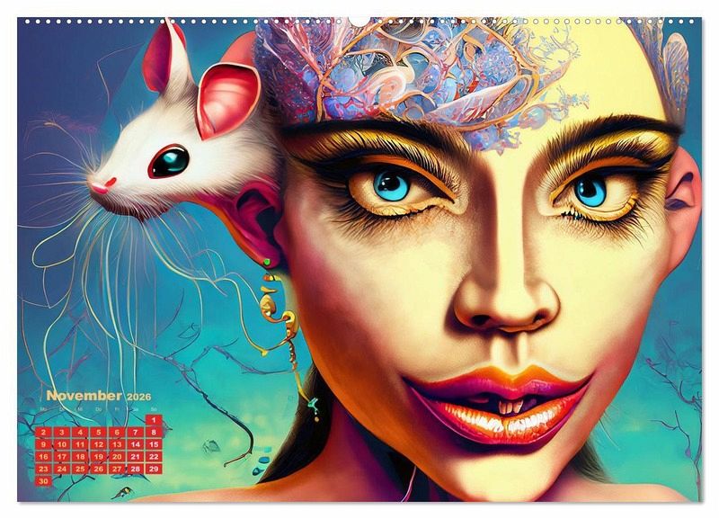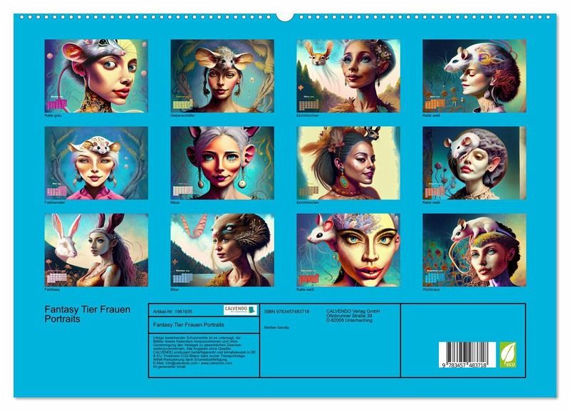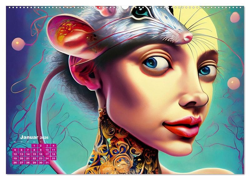 Ein atemberaubender Kalender mit Kunstwerken von schönen Frauen, kombiniert mit Nagetieren, halb Mensch halb Tier. Lassen Sie sich Monat für Monat neu verzaubern, mit den KI generierten Bilder, die traumhafte Fantasy Frauen Portraits mit Tieren zeigen. Dieser außergewöhnliche Kalender von Marlies Gaudig ist eine Bereicherung für Ihr Zuhause und ein einzigartiges Geschenk für Freunde, Familie und Kollegen.