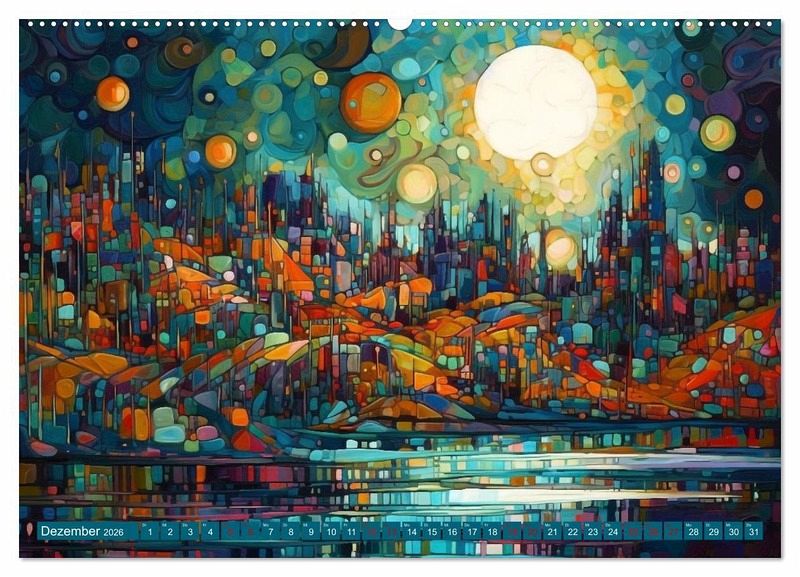 Dieser Kalender führt in einem wahren Rausch aus Farbe und Form auf fremde Planeten, wilde Landschaften und in moderne Großstädte. Wer sagt, dass das alles nicht atemberaubend schön sein kann. Einfach ein Jahr lang den Blick schweifen lassen und sich verlieren in der Vielfalt der Interpretation moderner Kunst. Dieser Kalender wurde mit KI gestaltet und in Photoshop komponiert.