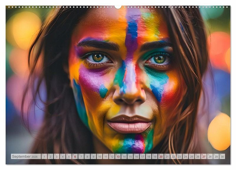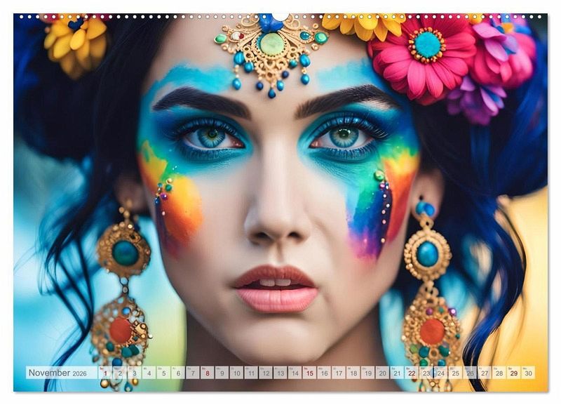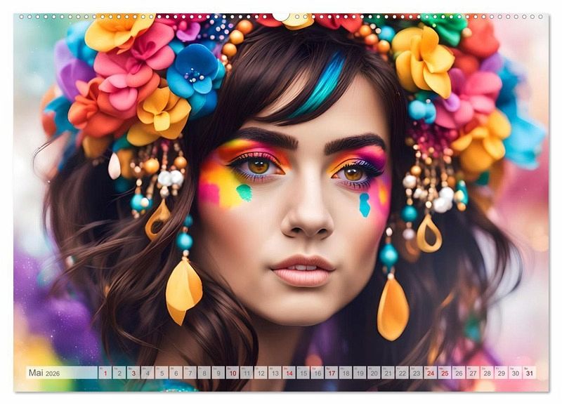 Entdecke die faszinierende Vielfalt der Weiblichkeit in unserem Kalender "Farben der Weiblichkeit". Tauche ein in eine Welt kunstvoller KI-Portraits, die die Schönheit und Sinnlichkeit der Frau in lebendigen Farben widerspiegeln. Jedes Bild zeigt wunderschöne Frauen mit kreativ bemalten Gesichtern und buntem Haarschmuck, die eine ganz eigene Geschichte erzählen. Lass dich von ihrer Ausdrucksstärke und Individualität inspirieren, während du durch das Jahr gehst.