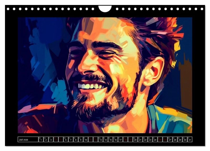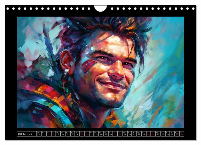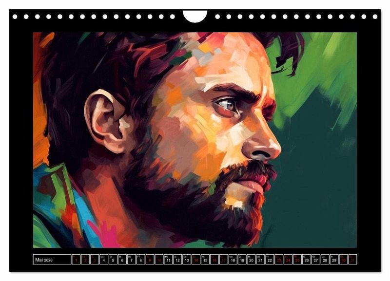 Ein farbenfroher Kalender mit Portraits von Männern, die im Leben ihre Aufgaben gefunden haben und sie entschlossen erfüllen. Auch wenn diese Portraits nicht von realen Menschen sind, so hat die KI doch einfangen können, was wir an Männern lieben und was wir in ihnen sehen. Lassen Sie sich ein Jahr lang begleiten von der Kraft des Männlichen, als Ergänzung zum Weiblichen. So wie es den Kalender "Farbenfroh Weiblich" gibt, so rundet dieser das Gesamtbild ab.