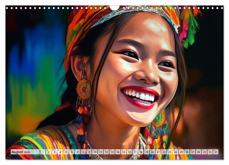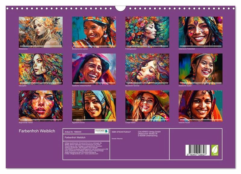 Ein farbenfroher Kalender voller Freude, Anmut und ansteckendem Lachen. Die Kraft der Jahreszeiten, die Anmut des Weiblichen rund um die Welt und einfach gute Laune für ein ganzes Jahr. Die Bilder dieses Kalenders wurden mit KI erstellt und in Photoshop finalisiert.