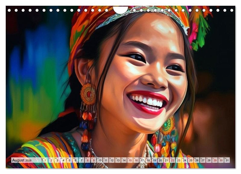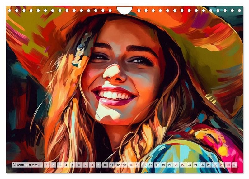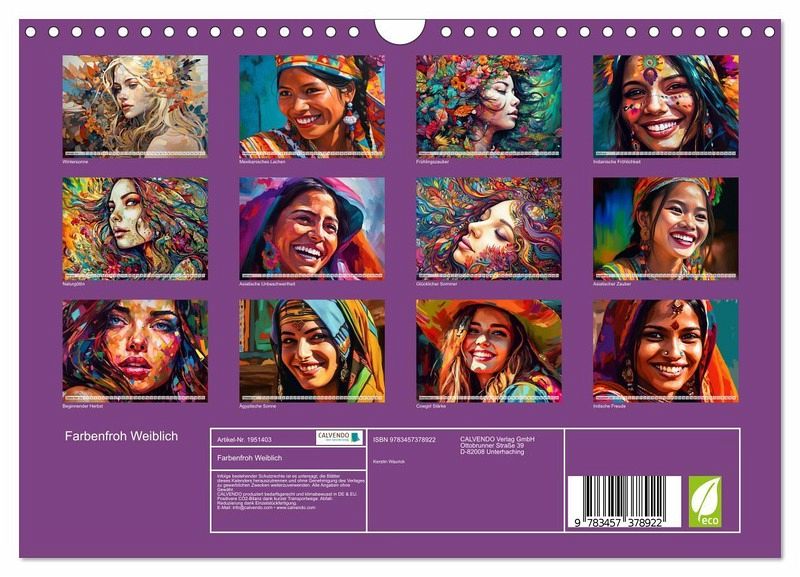 Ein farbenfroher Kalender voller Freude, Anmut und ansteckendem Lachen. Die Kraft der Jahreszeiten, die Anmut des Weiblichen rund um die Welt und einfach gute Laune für ein ganzes Jahr. Die Bilder dieses Kalenders wurden mit KI erstellt und in Photoshop finalisiert.