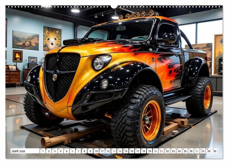 Spektakuläre Kunst auf vier Rädern: In "Farbenfrohe Lackvisionen" verschmelzen radikale Umbauten mit außergewöhnlichen Lackierungen zu echten Traumwagen. Jeder Monat präsentiert ein einzigartiges, KI-generiertes Showcar - geslammt, gechoppt und mit den wildesten Farbverläufen veredelt. Diese Fahrzeuge trotzen jeder Norm und glänzen als Vision extremer Fahrzeugkunst in luxuriösen Showräumen. Perfekt für alle, die kreatives Automobildesign lieben und sich von individueller Technik und Lackkunst inspirieren lassen möchten. Hier wird jede Seite zum Blickfang für Individualisten und leidenschaftliche Enthusiasten der Custom-Szene.