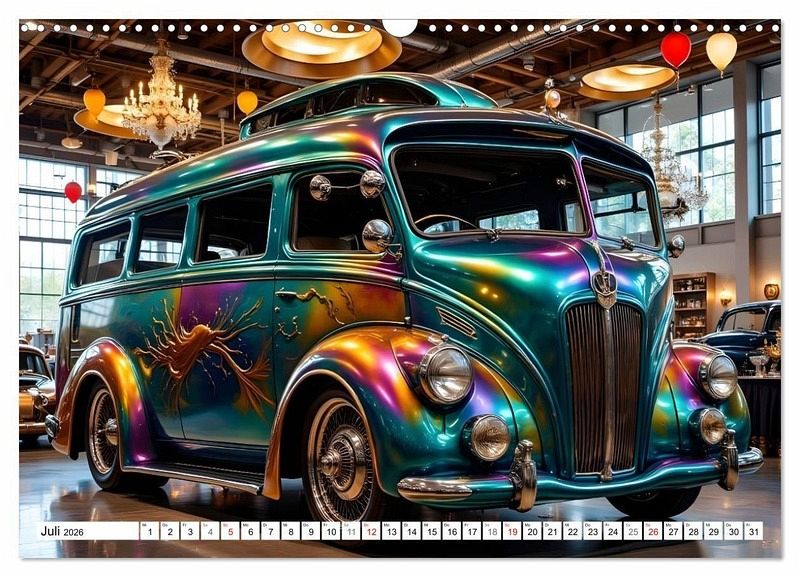 Spektakuläre Kunst auf vier Rädern: In "Farbenfrohe Lackvisionen" verschmelzen radikale Umbauten mit außergewöhnlichen Lackierungen zu echten Traumwagen. Jeder Monat präsentiert ein einzigartiges, KI-generiertes Showcar - geslammt, gechoppt und mit den wildesten Farbverläufen veredelt. Diese Fahrzeuge trotzen jeder Norm und glänzen als Vision extremer Fahrzeugkunst in luxuriösen Showräumen. Perfekt für alle, die kreatives Automobildesign lieben und sich von individueller Technik und Lackkunst inspirieren lassen möchten. Hier wird jede Seite zum Blickfang für Individualisten und leidenschaftliche Enthusiasten der Custom-Szene.