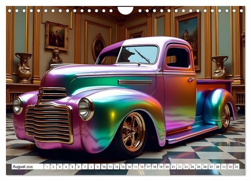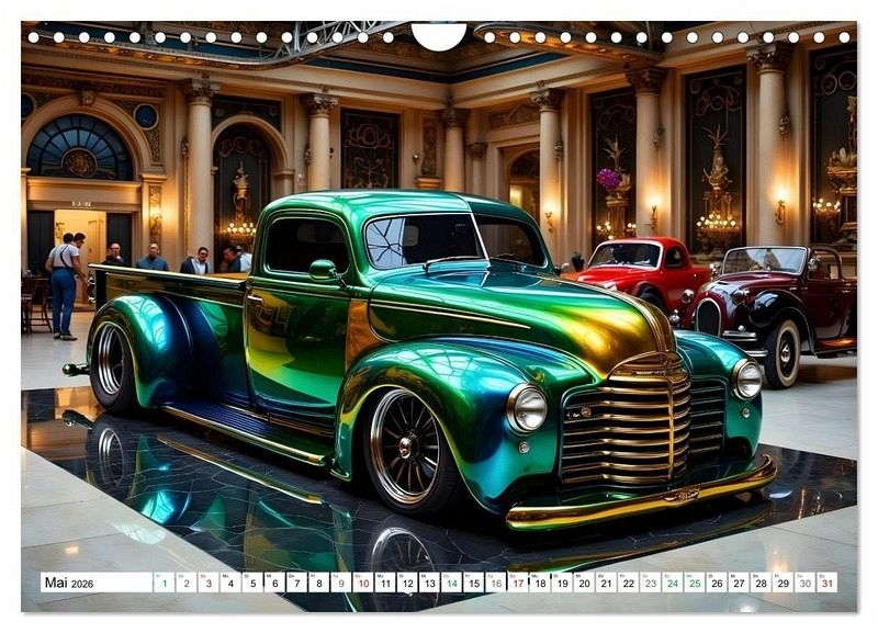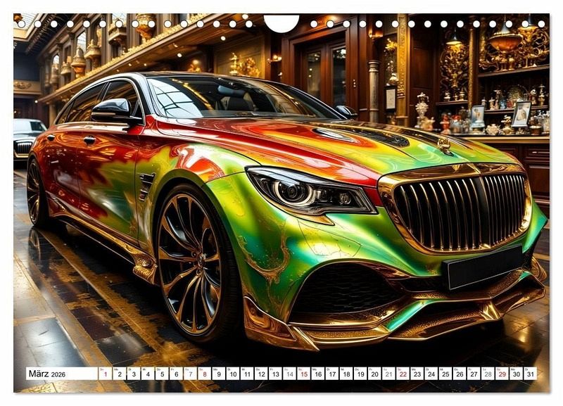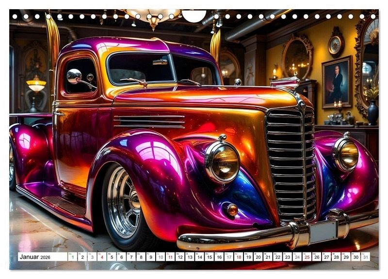 Spektakuläre Kunst auf vier Rädern: In "Farbenfrohe Lackvisionen" verschmelzen radikale Umbauten mit außergewöhnlichen Lackierungen zu echten Traumwagen. Jeder Monat präsentiert ein einzigartiges, KI-generiertes Showcar - geslammt, gechoppt und mit den wildesten Farbverläufen veredelt. Diese Fahrzeuge trotzen jeder Norm und glänzen als Vision extremer Fahrzeugkunst in luxuriösen Showräumen. Perfekt für alle, die kreatives Automobildesign lieben und sich von individueller Technik und Lackkunst inspirieren lassen möchten. Hier wird jede Seite zum Blickfang für Individualisten und leidenschaftliche Enthusiasten der Custom-Szene.