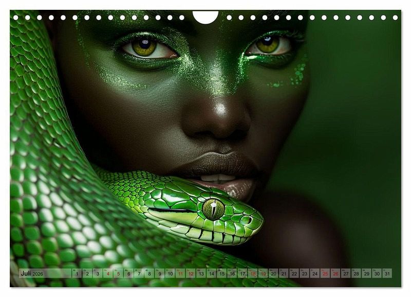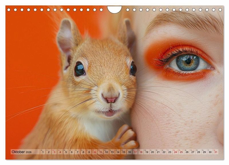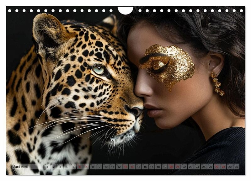 Ein Kalender, der zwei Schönheiten vereint. Wundervolle exotische und einheimische Tiere gemeinsam mit attraktiven Frauengesichtern, geschminkt in Farbharmonie passend zu den Tieren und stimmige Hintergründe verleihen jedem von einer künstlichen Intelligenz (KI) erstelltem Foto seinen ganz eigenen und faszinierenden Look. Ein außergewöhnlicher Kalender mit originellen Motiven.