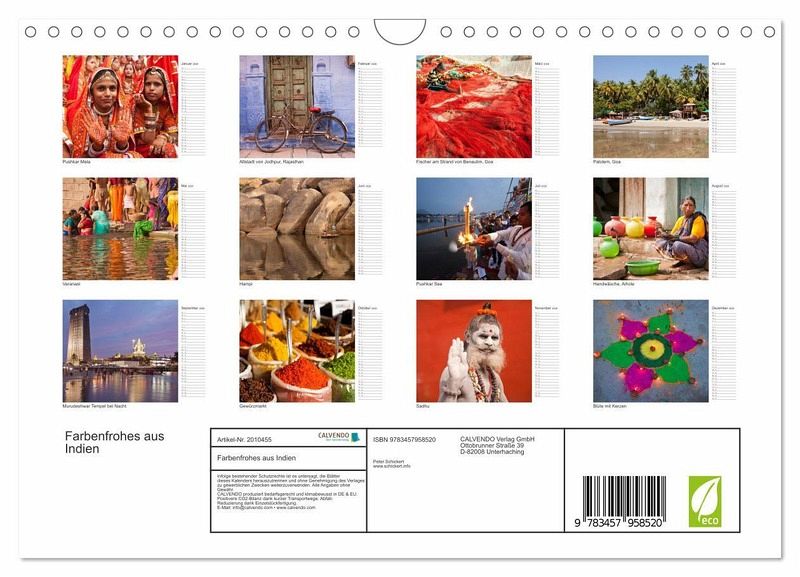 Dieser farbenfrohe Kalender vom Reisefotografen Peter Schickert zeigt die ganze Palette der bunten Farben Indiens - mit Planer-Funktion.