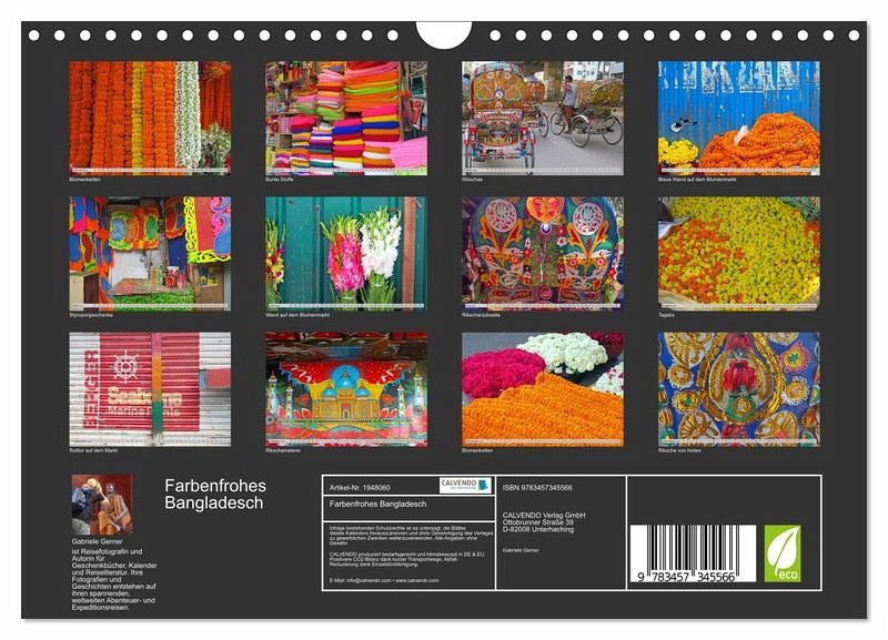 QUALITÄT - Hochwertiger Fotokalender mit 12 wunderschönen Motiven auf lichtbeständigem Bilderdruckpapier, robuste Spiralbindung mit Aufhängebügel.NACHHALTIG - deutliche Abfallreduzierung durch bedarfsgerechte Einzelstückfertigung, umweltfreundliches FSC-zertifiziertes Papier, Produktion in Deutschland, klimabewusste Logistik.PERFEKTES GESCHENK - Kalender für Freunde und Familie, für Kinder und Erwachsene, jung und alt, zu Weihnachten, Geburtstag oder zwischendurch.VIELFALT - Bildkalender in verschiedenen Formaten, z.B. DIN A5, DIN A4, DIN A3 sowie DIN A2. Ob Naturmotiv, Gemälde oder Fotos, ideal für ein persönliches Wohlfühlambiente.Genießen Sie ein visuelles Fest und einen farbenfrohen Blick auf das lebhafte Bangladesch. von Autor(in): Gabriele Gerner-Haudum