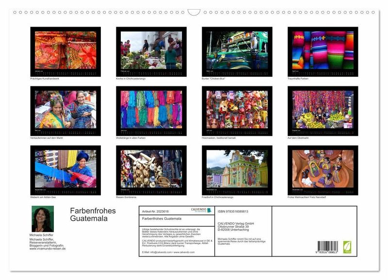QUALITÄT - Hochwertiger Fotokalender mit 12 wunderschönen Motiven auf lichtbeständigem Bilderdruckpapier, robuste Spiralbindung mit Aufhängebügel.NACHHALTIG - deutliche Abfallreduzierung durch bedarfsgerechte Einzelstückfertigung, umweltfreundliches FSC-zertifiziertes Papier, Produktion in Deutschland, klimabewusste Logistik.PERFEKTES GESCHENK - Kalender für Freunde und Familie, für Kinder und Erwachsene, jung und alt, zu Weihnachten, Geburtstag oder zwischendurch.VIELFALT - Bildkalender in verschiedenen Formaten, z.B. DIN A5, DIN A4, DIN A3 sowie DIN A2. Ob Naturmotiv, Gemälde oder Fotos, ideal für ein persönliches Wohlfühlambiente.Guatemala, ein Land voller Farben! vonAutor(in): Michaela Schiffer