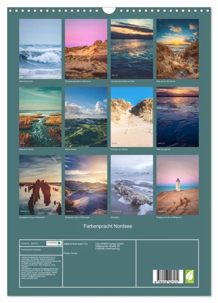 QUALITÄT - Hochwertiger Fotokalender mit 12 wunderschönen Motiven auf lichtbeständigem Bilderdruckpapier, robuste Spiralbindung mit Aufhängebügel.NACHHALTIG - deutliche Abfallreduzierung durch bedarfsgerechte Einzelstückfertigung, umweltfreundliches FSC-zertifiziertes Papier, Produktion in Deutschland, klimabewusste Logistik.PERFEKTES GESCHENK - Kalender für Freunde und Familie, für Kinder und Erwachsene, jung und alt, zu Weihnachten, Geburtstag oder zwischendurch.VIELFALT - Bildkalender in verschiedenen Formaten, z.B. DIN A5, DIN A4, DIN A3 sowie DIN A2. Ob Naturmotiv, Gemälde oder Fotos, ideal für ein persönliches Wohlfühlambiente.Dieser Kalender zeigt in welchen Farben die Nordseeküste vor Allem am Abend erstrahlt. von Autor(in): Florian Kunde