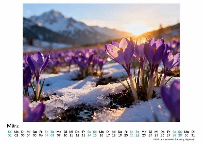 Die Natur komponiert mit Farben Symphonien, die Stimmungen erzeugen und Geschichten erzählen. Der Kalender "Farbenspiele der Natur" fängt diese Momente ein und konzentriert sich auf die kunstvolle Anordnung von Farbtönen in Landschaften und Naturdetails. Jeder Monat enthüllt eine neue Komposition, die das Auge erfreut und die Seele berührt. Dieser Kalender ist eine passende Wahl: * Für Liebhaber von Naturfotografie und kunstvollen Kompositionen. * Für Menschen, die ihre Räume mit harmonischen und farbintensiven Motiven gestalten möchten. * Für alle, die in den Details der Natur Inspiration und Ruhe finden. Jedes Monatsblatt präsentiert eine einzigartige Szenerie, bei der das Zusammenspiel der Farben im Mittelpunkt steht. Von den sanften Pastelltönen einer Morgendämmerung bis zum kräftigen Leuchten herbstlicher Wälder zeigt der Kalender die Vielfalt der natürlichen Farbpalette. Die Motive sind das Ergebnis eines kreativen Prozesses, bei dem digitale Werkzeuge und ein tiefes Verständnis für natürliche Ästhetik zu neuen Bildwelten verschmelzen. Mit dem Kauf dieses Kalenders kann man Folgendes erwarten: * Zwölf sorgfältig ausgewählte Motive mit Fokus auf Farbharmonie. * Ein Monatskalender für das ganze Jahr. * Ein visueller Begleiter, der Monat für Monat neue Perspektiven auf die Natur eröffnet. Der Kalender "Farbenspiele der Natur" ist eine Sammlung von Impressionen, die die Schönheit der Welt in ihren Farben zelebriert. Es lohnt sich, einen Blick auf die einzelnen Monatsmotive zu werfen und die Kompositionen auf sich wirken zu lassen.
