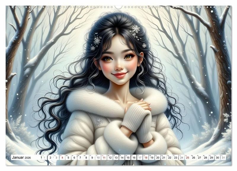 Entdecken Sie mit unserem einzigartigen Kalender "Farbentanz der Jahreszeiten - Ein Jahr voller zarter Geschichten" zwölf zauberhafte, malerische Frauenporträts in harmonischen, naturverbundenen Szenerien, liebevoll für jede Jahreszeit gestaltet. Jedes Bild wurde mit modernster KI-Technologie erzeugt und verbindet digitale Malerei mit zarten, malerischen Details, die eine friedvolle, heile Welt voller Wärme und Freude vermitteln. Perfekt als Geschenk oder für das eigene Zuhause, um das ganze Jahr über Inspiration und Wohlbefinden zu genießen.