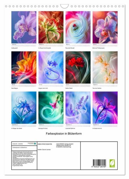 QUALITÄT - Hochwertiger Fotokalender mit 12 wunderschönen Motiven auf lichtbeständigem Bilderdruckpapier, robuste Spiralbindung mit Aufhängebügel.NACHHALTIG - deutliche Abfallreduzierung durch bedarfsgerechte Einzelstückfertigung, umweltfreundliches FSC-zertifiziertes Papier, Produktion in Deutschland, klimabewusste Logistik.PERFEKTES GESCHENK - Kalender für Freunde und Familie, für Kinder und Erwachsene, jung und alt, zu Weihnachten, Geburtstag oder zwischendurch.VIELFALT - Bildkalender in verschiedenen Formaten, z.B. DIN A5, DIN A4, DIN A3 sowie DIN A2. Ob Naturmotiv, Gemälde oder Fotos, ideal für ein persönliches Wohlfühlambiente.Blütenkunst entfaltet sich als eine bezaubernde Symbiose von Farben, Formen und kreativen Ausdrucksformen. von Autor(in): Steffen Gierok ; Magik Artist Design