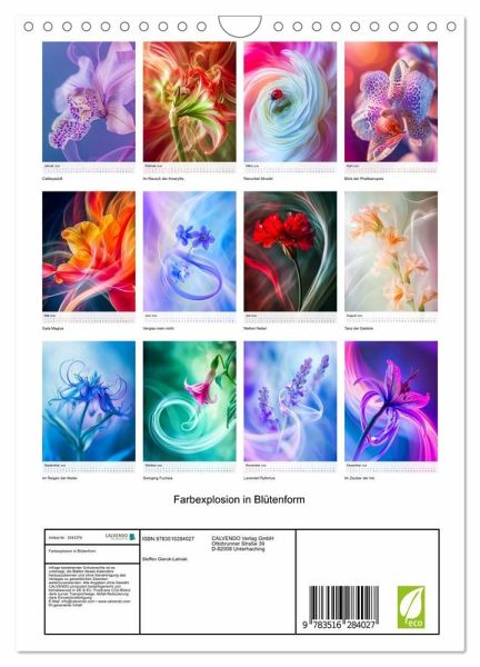 QUALITÄT - Hochwertiger Fotokalender mit 12 wunderschönen Motiven auf lichtbeständigem Bilderdruckpapier, robuste Spiralbindung mit Aufhängebügel.NACHHALTIG - deutliche Abfallreduzierung durch bedarfsgerechte Einzelstückfertigung, umweltfreundliches FSC-zertifiziertes Papier, Produktion in Deutschland, klimabewusste Logistik.PERFEKTES GESCHENK - Kalender für Freunde und Familie, für Kinder und Erwachsene, jung und alt, zu Weihnachten, Geburtstag oder zwischendurch.VIELFALT - Bildkalender in verschiedenen Formaten, z.B. DIN A5, DIN A4, DIN A3 sowie DIN A2. Ob Naturmotiv, Gemälde oder Fotos, ideal für ein persönliches Wohlfühlambiente.Blütenkunst entfaltet sich als eine bezaubernde Symbiose von Farben, Formen und kreativen Ausdrucksformen. von Autor(in): Steffen Gierok ; Magik Artist Design