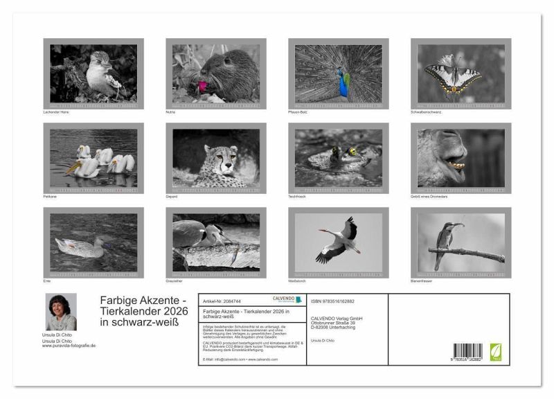 QUALITÄT - Hochwertiger Fotokalender mit 12 wunderschönen Motiven auf lichtbeständigem Bilderdruckpapier, robuste Spiralbindung mit Aufhängebügel.NACHHALTIG - deutliche Abfallreduzierung durch bedarfsgerechte Einzelstückfertigung, umweltfreundliches FSC-zertifiziertes Papier, Produktion in Deutschland, klimabewusste Logistik.PERFEKTES GESCHENK - Kalender für Freunde und Familie, für Kinder und Erwachsene, jung und alt, zu Weihnachten, Geburtstag oder zwischendurch.VIELFALT - Bildkalender in verschiedenen Formaten, z.B. DIN A5, DIN A4, DIN A3 sowie DIN A2. Ob Naturmotiv, Gemälde oder Fotos, ideal für ein persönliches Wohlfühlambiente.Tierischer in schwarz-weiß Kalender mit farblichen Akzenten von Autor(in): PuraVida