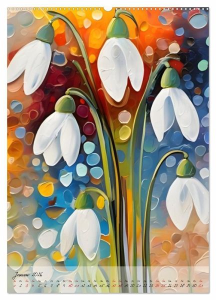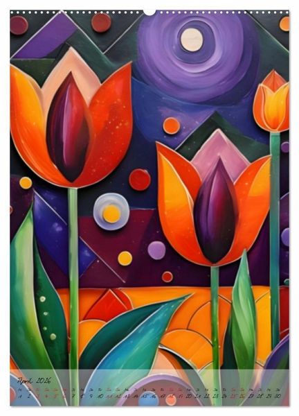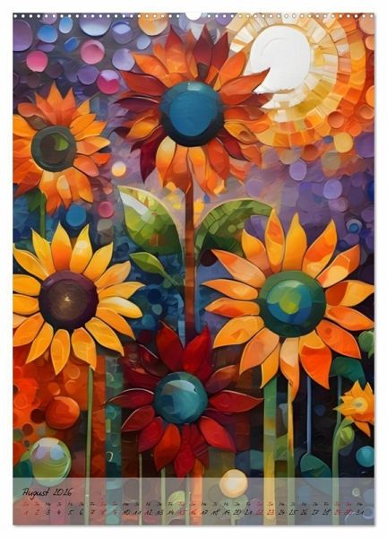 Blumen begleiten den Menschen seit jeher als Symbol für Schönheit, Vergänglichkeit und Erneuerung. Der Kalender richtet sich an alle, die Kunst lieben, aber auch an jene, die ihrem Alltag bewusst kleine Momente der Inspiration schenken möchten, ein Begleiter durch das Jahr, ein ständiger Blickfang an der Wand mit vielfältigen Farben mit kräftigen dynamischen Tönen bis hin zu ruhigen Kompositionen. Ein Blickfang für jeden Raum, der Farbe in den Alltag bringt. Gestaltung mit KI.