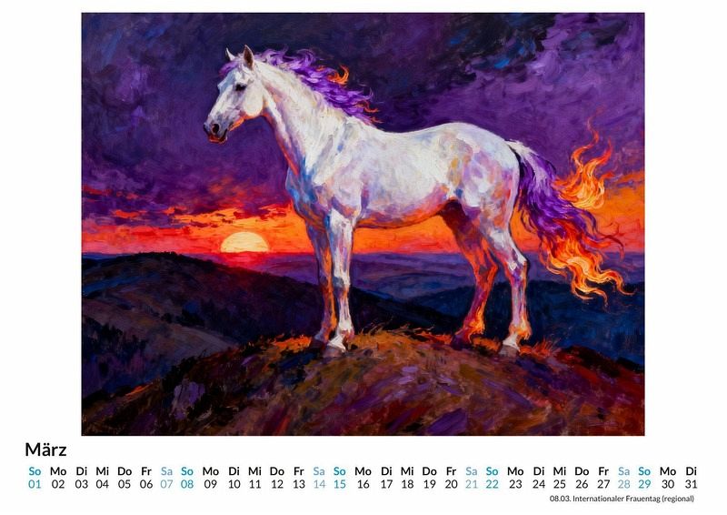 Farben, die Emotionen wecken und Formen, die Geschichten erzählen. Der deutsche Expressionismus war eine Revolution der Wahrnehmung, ein Aufbruch aus starren Konventionen. Der Kalender "Farbintensive expressionistische Kunst" fängt diesen Geist ein und präsentiert zwölf Motive, die das Wesen dieser Kunstepoche neu interpretieren. Dieser Kalender ist eine ausgezeichnete Wahl für: Liebhaber des deutschen Expressionismus und seiner charakteristischen Bildsprache. Menschen, die kraftvolle Farben und dynamische Kompositionen in ihrem Alltag schätzen. Suchende nach einem besonderen Geschenk für kunstinteressierte Freunde und Familie. Jedes Monatsblatt zeigt ein Werk, das in seiner Intensität an die Künstlergruppen Brücke oder Blauer Reiter erinnert. Die Motive reichen von pulsierenden Stadtansichten über ausdrucksstarke Porträts bis hin zu Landschaften, die innere Zustände spiegeln. Diese Bilder wurden nicht mit dem Pinsel, sondern durch die präzise Steuerung digitaler Prozesse komponiert, um eine moderne Hommage an die Meister der Vergangenheit zu schaffen. Was dieser Kalender bietet: Zwölf ausdrucksstarke Monatsmotive im Stil des Expressionismus. Ein praktisches Kalendarium für die Organisation von Terminen. Ein visueller Begleiter durch das Jahr, der jeden Monat neue Energie vermittelt. Dieser Kalender ist mehr als nur ein Zeitplaner; er ist eine tägliche Begegnung mit der Kraft der Farbe und der emotionalen Tiefe des Expressionismus. Eine Sammlung, die den Betrachter einlädt, die Welt durch ein Spektrum leuchtender Töne neu zu sehen. Entdecken Sie die zwölf Kompositionen, die das Jahr begleiten.