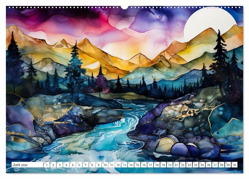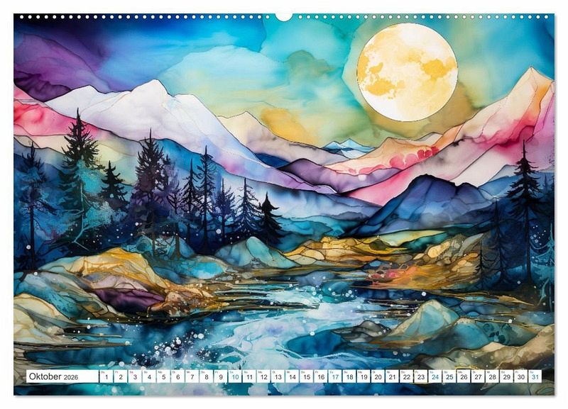 Tauchen Sie ein in die faszinierende Welt der Natur mit diesem exklusiven Kalender - einer meisterhaften Kollektion von Landschaften, die durch die einzigartige Alkohol- und Ink-Technik zum Leben erweckt wurden. Jeder Monat enthüllt traumhafte Szenarien, in denen Tinte und Alkohol sich zu einem wahren Kunstwerk vereinen.