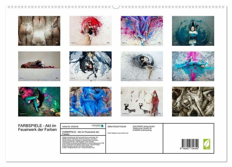 PREMIUM-LINIE - Brillanter Fotokalender mit 12 wunderschönen Motiven, Kunstdruck in Hochglanz in Museumsqualität.QUALITÄT - edle Materialien, stabile Rückwand mit 2 innovativen Einstecktaschen für eine optimale Präsentation an der Wand.NACHHALTIG - deutliche Abfallreduzierung durch bedarfsgerechte Einzelstückfertigung, umweltfreundliches FSC-zertifiziertes Papier, Produktion in Deutschland, klimabewusste Logistik.PERFEKTES GESCHENK - Kalender für Freunde und Familie, für Erwachsene, zu Weihnachten, Geburtstag oder zwischendurch.Bodypaintings, kunstvoller Aktfotografie von Autor(in): ullision