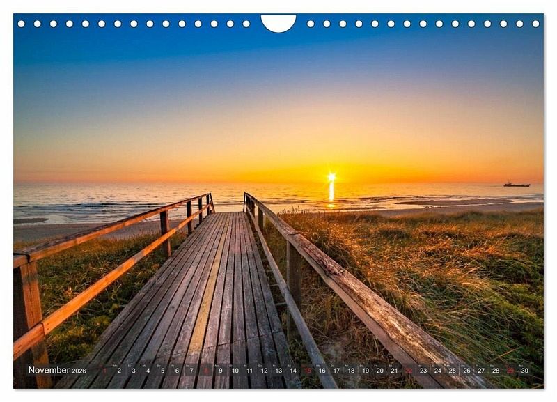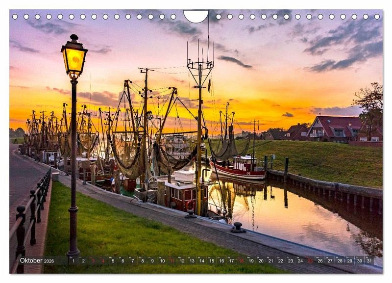 Beeindruckende, stimmungsvolle Sonnenuntergangs-Aufnahmen entlang der Nordseeküste sind hier für den Kalender sorgfältig ausgewählt worden. Diese Auswahl zeigt von der Sonne angestrahlte Landschaften, Häfen, das Wattenmeer und Sehenswürdigkeiten von der Küste. Genießen Sie Monat für Monat die zauberhaften Bilder und freuen Sie sich auf die nächste Reise an die Küste.