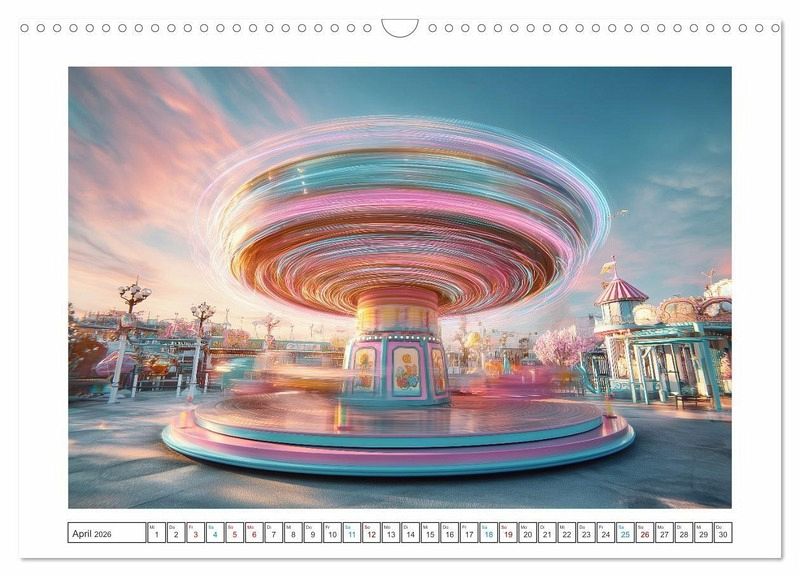 Tauche ein in ein Jahr voller Farben, Bewegung und Emotionen. Dieser Kalender bringt die Magie der Nacht in dein Zuhause: Fahrgeschäfte verwandeln sich in Lichtspiralen, Farben fließen wie Musik durch die Dunkelheit, und jeder Monat erzählt eine neue, pulsierende Geschichte. Perfekt für alle, die Energie, Leben und atemberaubende Momente lieben. Alle hier gezeigten Bilder wurden mit Sorgfalt, Liebe und mit Hilfe einer KI generiert. Abschließend werden sie mit Bildbearbeitungsprogrammen überarbeitet und in den Kalender eingefügt.