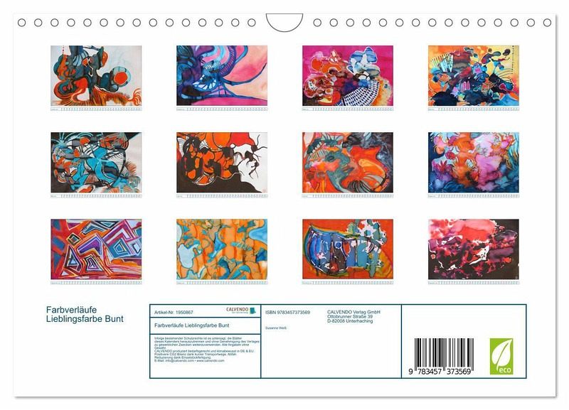 QUALITÄT - Hochwertiger Fotokalender mit 12 wunderschönen Motiven auf lichtbeständigem Bilderdruckpapier, robuste Spiralbindung mit Aufhängebügel.NACHHALTIG - deutliche Abfallreduzierung durch bedarfsgerechte Einzelstückfertigung, umweltfreundliches FSC-zertifiziertes Papier, Produktion in Deutschland, klimabewusste Logistik.PERFEKTES GESCHENK - Kalender für Freunde und Familie, für Kinder und Erwachsene, jung und alt, zu Weihnachten, Geburtstag oder zwischendurch.VIELFALT - Bildkalender in verschiedenen Formaten, z.B. DIN A5, DIN A4, DIN A3 sowie DIN A2. Ob Naturmotiv, Gemälde oder Fotos, ideal für ein persönliches Wohlfühlambiente.fantasievolle farbstarke Tuschemalereien, die durch das Jahr begleiten von Autor(in): Susanne Weiß