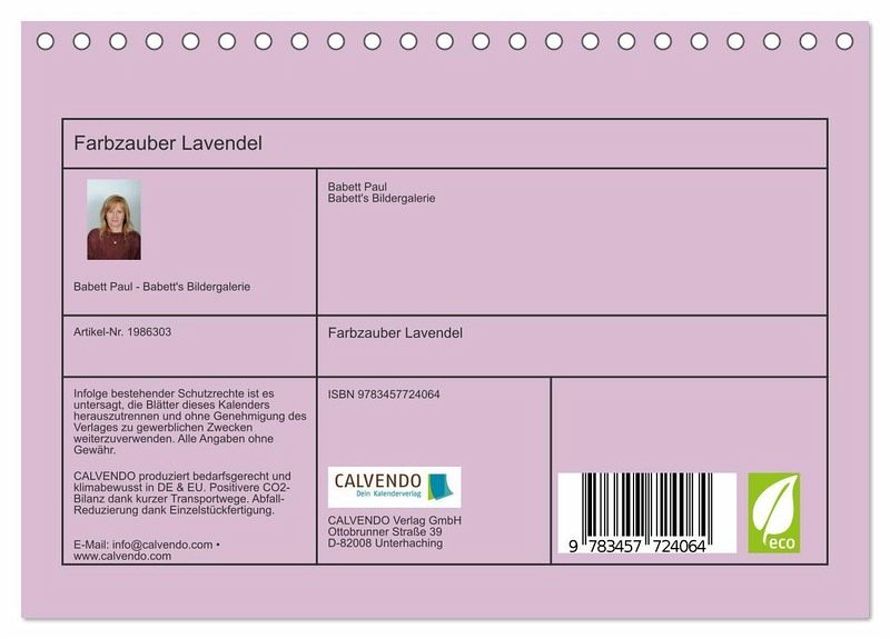 QUALITÄT - Hochwertiger Fotokalender mit 12 wunderschönen Motiven auf lichtbeständigem Bilderdruckpapier, robuste Spiralbindung.NACHHALTIG - deutliche Abfallreduzierung durch bedarfsgerechte Einzelstückfertigung, umweltfreundliches FSC-zertifiziertes Papier, Produktion in Deutschland, klimabewusste Logistik.PERFEKTES GESCHENK - Kalender für Freunde und Familie, für Kinder und Erwachsene, jung und alt, zu Weihnachten, Geburtstag oder zwischendurch.VIELFALT - Bildkalender in verschiedenen Formaten, z.B. DIN A5, DIN A4, DIN A3 sowie DIN A2. Ob Naturmotiv, Gemälde oder Fotos, ideal für ein persönliches Wohlfühlambiente.Lavendel in England mit unterschiedlichen Farbnuancen. von Autor(in): Babett's Bildergalerie