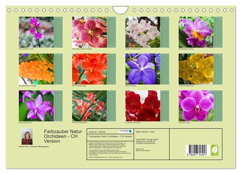 QUALITÄT - Hochwertiger Fotokalender mit 12 wunderschönen Motiven auf lichtbeständigem Bilderdruckpapier, robuste Spiralbindung mit Aufhängebügel.NACHHALTIG - deutliche Abfallreduzierung durch bedarfsgerechte Einzelstückfertigung, umweltfreundliches FSC-zertifiziertes Papier, Produktion in Deutschland, klimabewusste Logistik.PERFEKTES GESCHENK - Kalender für Freunde und Familie, für Kinder und Erwachsene, jung und alt, zu Weihnachten, Geburtstag oder zwischendurch.VIELFALT - Bildkalender in verschiedenen Formaten, z.B. DIN A5, DIN A4, DIN A3 sowie DIN A2. Ob Naturmotiv, Gemälde oder Fotos, ideal für ein persönliches Wohlfühlambiente.Orchideen in farbenfroher Blütenpracht von Autor(in): Babett's Bildergalerie