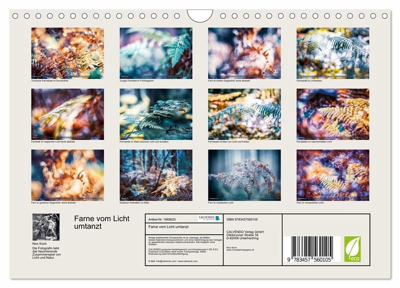 QUALITÄT - Hochwertiger Fotokalender mit 12 wunderschönen Motiven auf lichtbeständigem Bilderdruckpapier, robuste Spiralbindung mit Aufhängebügel.NACHHALTIG - deutliche Abfallreduzierung durch bedarfsgerechte Einzelstückfertigung, umweltfreundliches FSC-zertifiziertes Papier, Produktion in Deutschland, klimabewusste Logistik.PERFEKTES GESCHENK - Kalender für Freunde und Familie, für Kinder und Erwachsene, jung und alt, zu Weihnachten, Geburtstag oderzwischendurch.VIELFALT - Bildkalender in verschiedenen Formaten, z.B. DIN A5, DIN A4, DIN A3 sowie DIN A2. Ob Naturmotiv, Gemälde oder Fotos, ideal für ein persönliches Wohlfühlambiente.Farne bei verschiedenen Lichtstimmungen von Autor(in): Nicc Koch