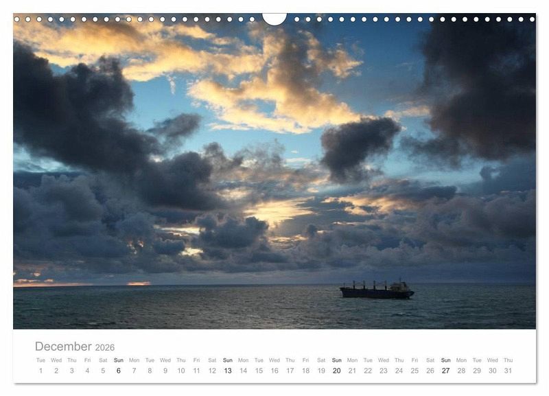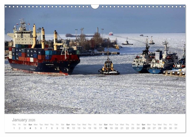 With this calendar in your hands you can feel the fascination of worldwide shipping. Travel through the Panama Canal and the Suez Canal, across high seas to New York as well as to Asia or to the wintery port of St. Petersburg on board a container ship or gas tanker.
