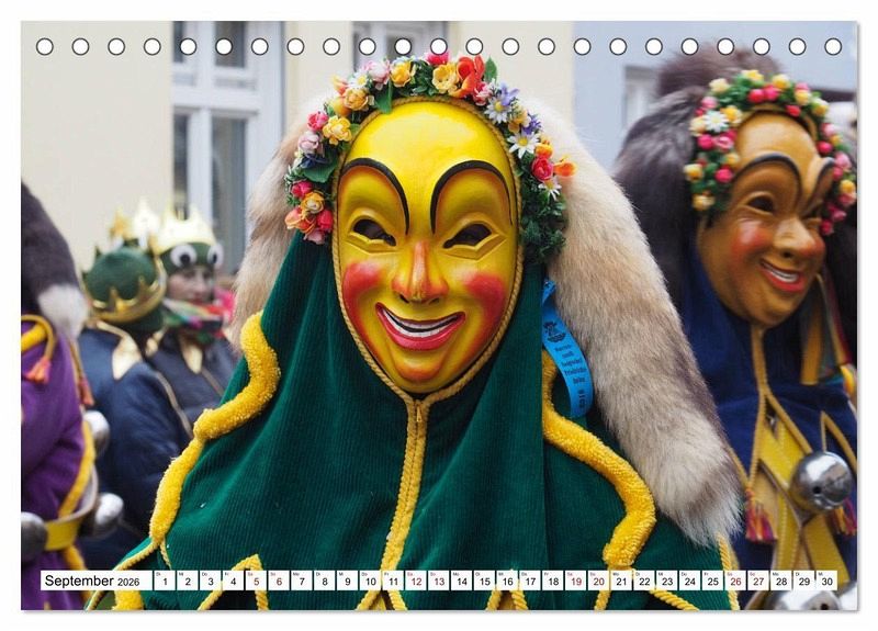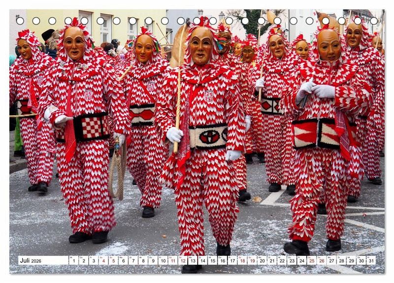 Die närrische 5. Jahreszeit hat im schwäbisch-allemannischen Raum eine ganz besondere Ausprägung. Sie ist meist historisches Brauchtum und unterscheidet sich deutlich vom Karneval. Jede Narrenzunft hat ihre eigenen Narrenfiguren, die ihr Häs bei den Narrensprüngen tragen. Der Kalender zeigt farbenprächtige Narrenfiguren aus Oberschwaben und von der Alb.