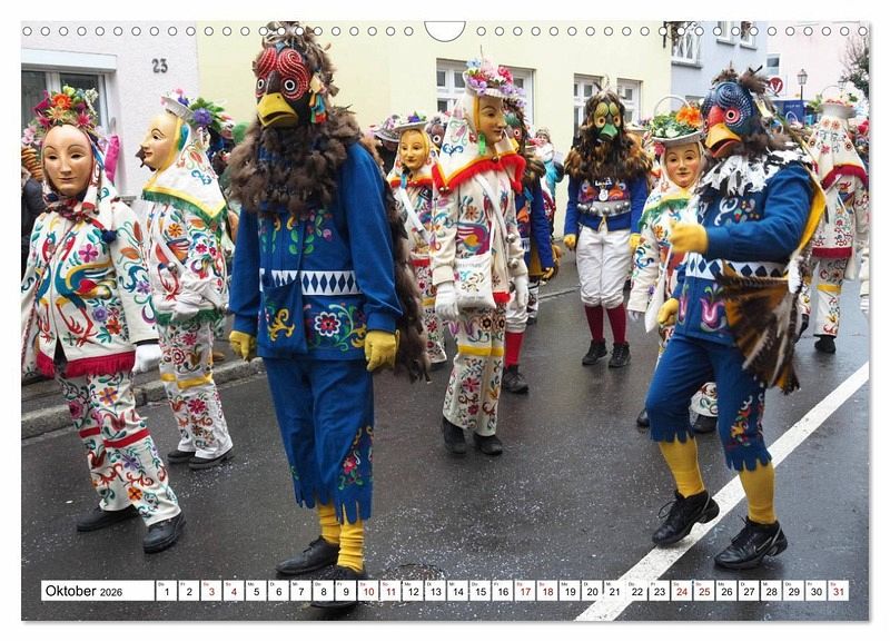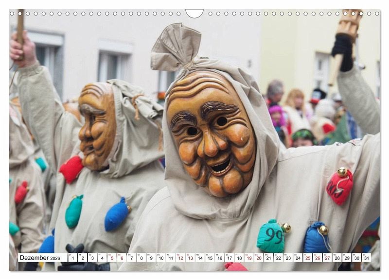 Die närrische 5. Jahreszeit hat im schwäbisch-allemannischen Raum eine ganz besondere Ausprägung. Sie ist meist historisches Brauchtum und unterscheidet sich deutlich vom Karneval. Jede Narrenzunft hat ihre eigenen Narrenfiguren, die ihr Häs bei den Narrensprüngen tragen. Der Kalender zeigt farbenprächtige Narrenfiguren aus Oberschwaben und von der Alb.