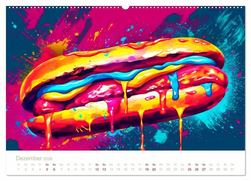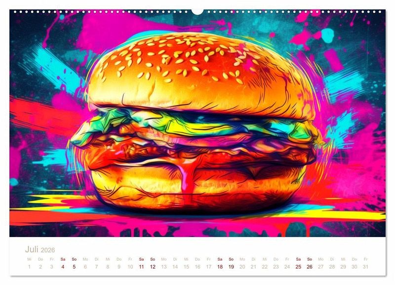 Unsere Wandkalender mit KI-generierten Bildern zeigen atemberaubende Bilder von leckerem Fast Food. Jedes Bild ist sorgfältig ausgewählt und bearbeitet, um die Schönheit und Einzigartigkeit jedes Essens zu betonen und Ihnen einen Eindruck von ihrem möglichen Essen zu geben.