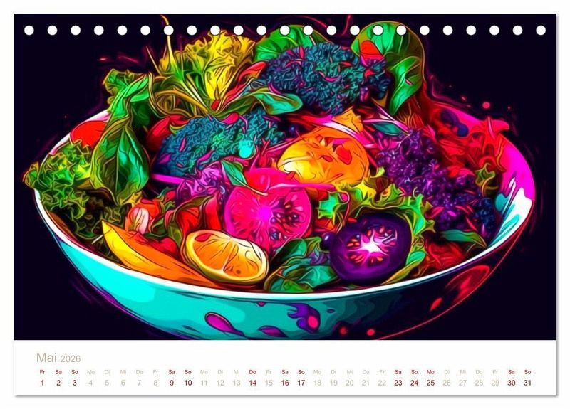 Dieser Kalender ist nicht nur ein beeindruckender Blickfang für jede Wand, sondern auch eine Möglichkeit, um Ihre Fantasie anzuregen und sich Gedanken über eine mögliche Speise zu machen. Ob im Büro, Küche, im Wohnzimmer oder im Empfangsbereich, dieser Kalender wird Sie jeden Monat auf eine Reise in die schnelle Kulinarik mitnehmen.