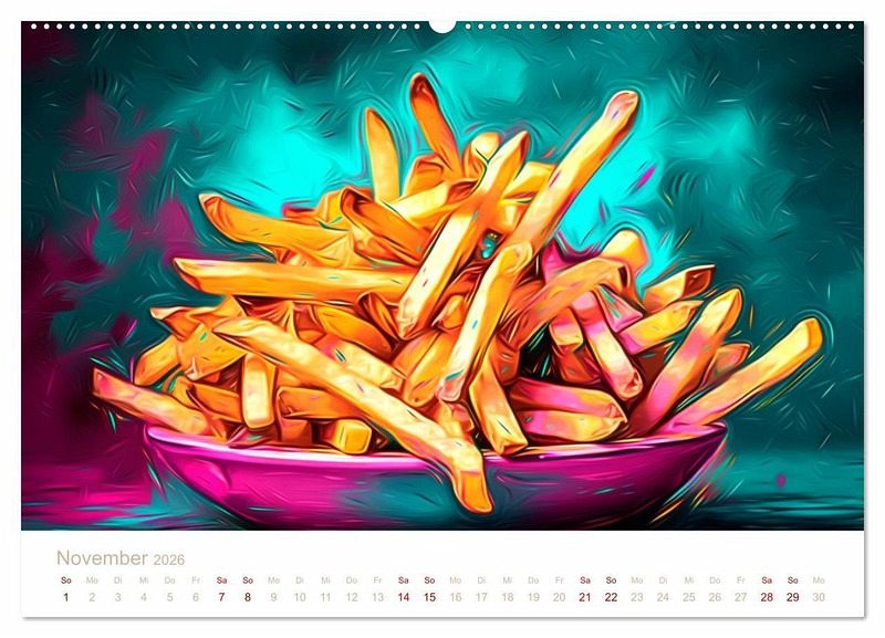 Unsere Wandkalender mit KI-generierten Bildern zeigen atemberaubende Bilder von leckerem Fast Food. Jedes Bild ist sorgfältig ausgewählt und bearbeitet, um die Schönheit und Einzigartigkeit jedes Essens zu betonen und Ihnen einen Eindruck von ihrem möglichen Essen zu geben.